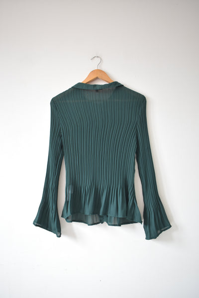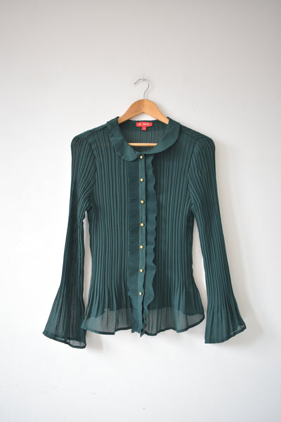 Derhy est, comme son nom l'indique une chemise plissée teinte émeraude de la marque René Derhy en T38.