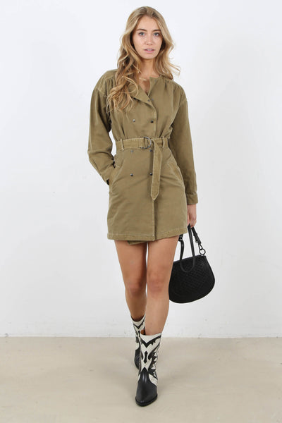 Robe en jean kaki Bash Dris Olive neuve avec etiquette en T38 ( dispo en seconde main à 60€ sur le site de la marque. Valeurs neuve 200€ )