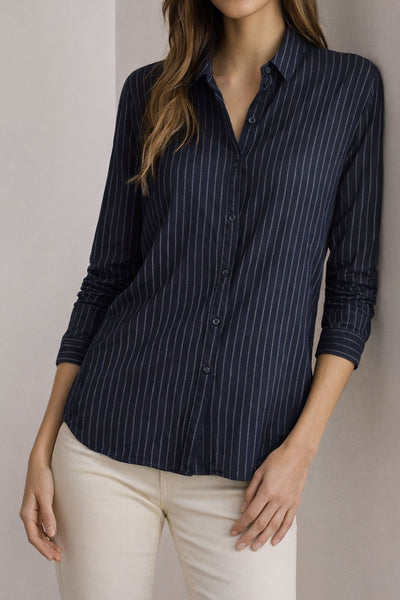 Chemise marine finement rayée de la marque Comptoir des Cotonniers en T38.