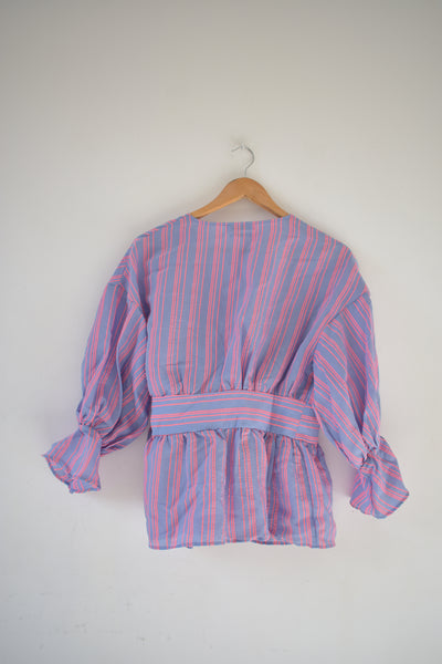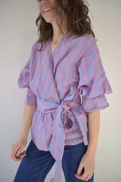 Du bleu lila sous teinte bleue bébé et des rayures rose fluo, on adore !