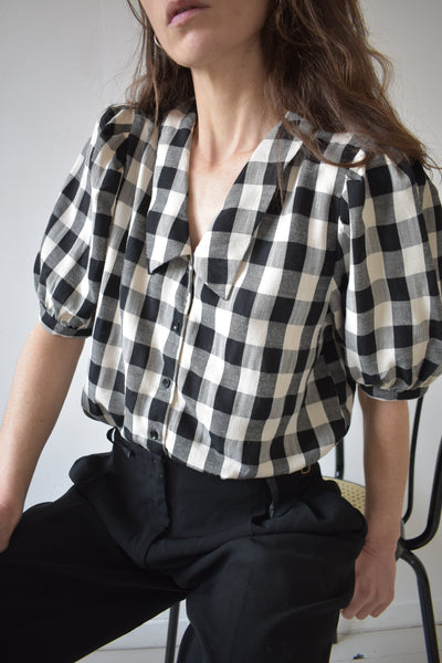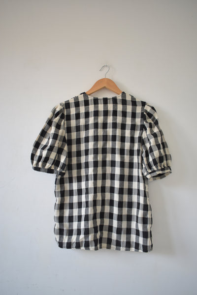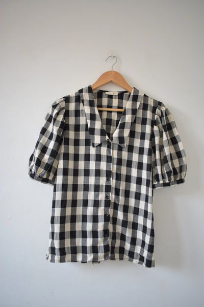 Beau chemisier à grands carreaux noir et blanc.
