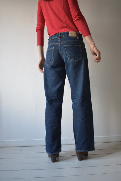 Taille basse, teinte profonde, coupe droite un peu large, une trouvaille, qualité, marque et coupe qu'on préfère dénicher à prix malin seconde main ( valeur d'un jean Motelrocks : 80€ )