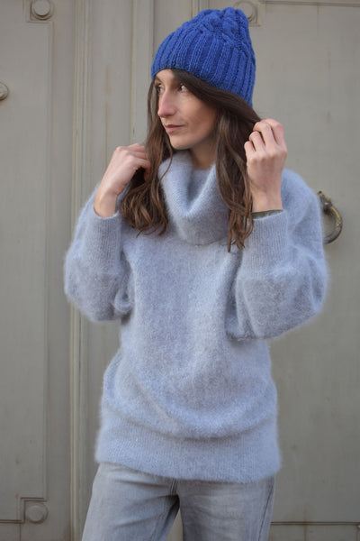 Un pull bien long, que vous pouvez assumer avec une jupe, un short et des collants. Ou replié un peu vers l'intérieur pour venir le porter ample avec un beau jean.
