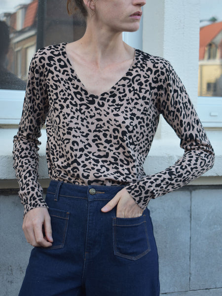Gaétanne est un pull fin léopard parfait sous le blazer en mi-saison.