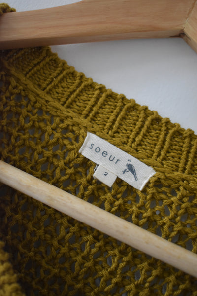 Petit coup de coeur pour ce pull en coton tressé moutarde d'une ancienne collection de la qualitative marque Soeur ( valeur d'un pull soeur : 180€ ).