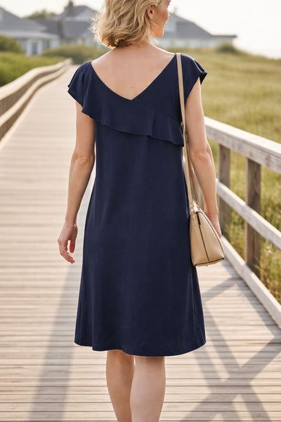 Vous recherchiez une robe confort ( 100% viscose ), chic, marine, pas trop courte ? Vous venez de la chiner en 1 clic au prix malin seconde main.