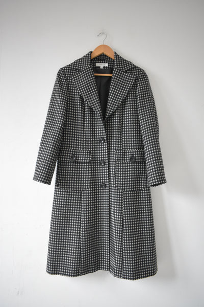 Longue veste chic noire et blanche bien chaude : 100% laine fine de la qualitative marque 123.