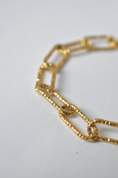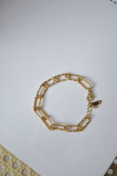 Ciselé est un bracelet chaîne dorée en acier inoxydable.