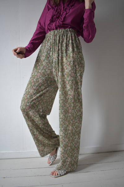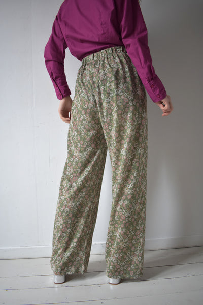 Glow est un pantalon fluide fleurie pailleté, pour un Noël green de l'achat à la tenue.