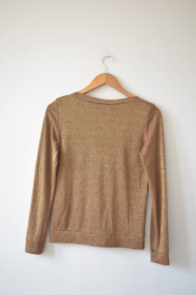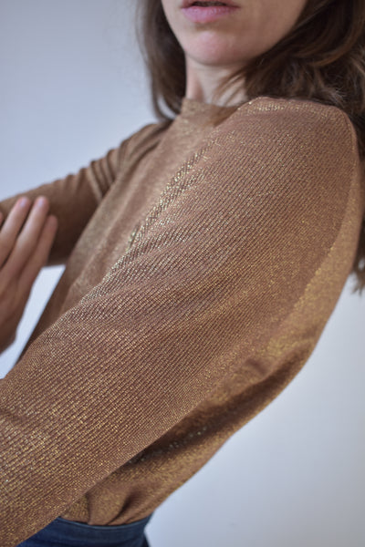 Millefeuille est un top longues manches doré légèrement pailleté.