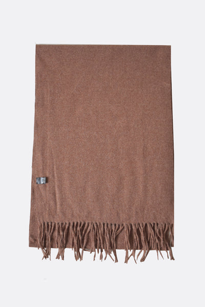 Noisette est une écharpe beige foncé qui protège du vent sans gratter le cou !