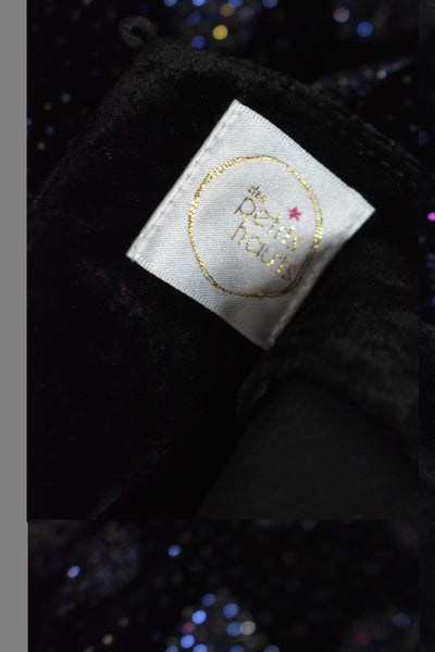 Velours, pois pailletés violets et joli haut du dos, tout un programme scintillant pour votre tenue de fin d'année, seconde main à prix malin !