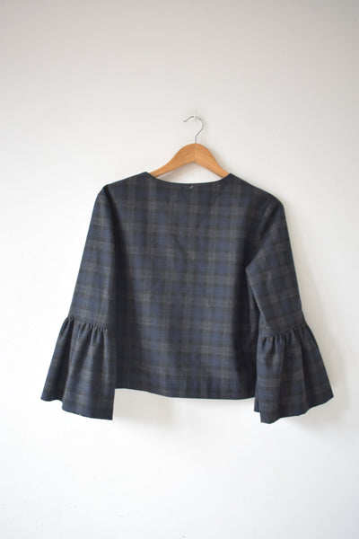 Saxon est une surchemise crop ( courte ) automnale Zara qu'on aime porter par dessus un petit cachemire.