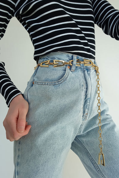 Ceinture chic vintage en chaîne dorée.
