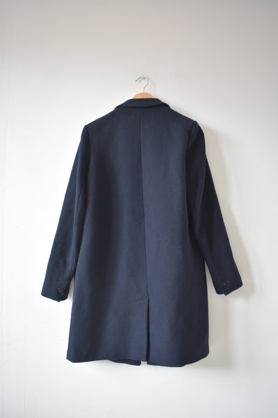 Navy est un manteau Zara TRF marine mi-long en T38 composé à 53% de laine.