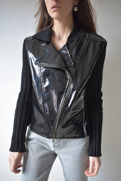 Du PVC ( trés inspi courreges ) et 50% de laine ! Chaud et qui ne gratte pas pour un look unique un poil futuriste.