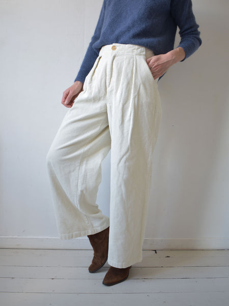 Achile est un pantalon flare en velours côtelé blanc cassé.