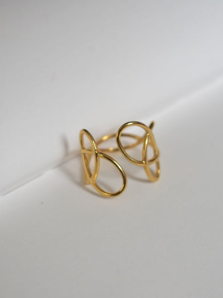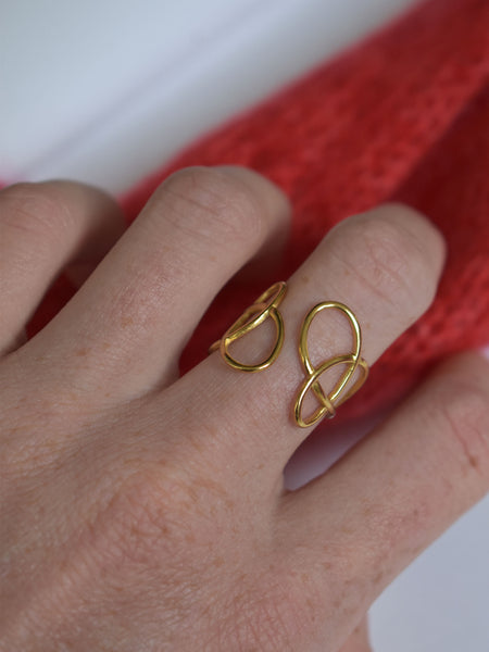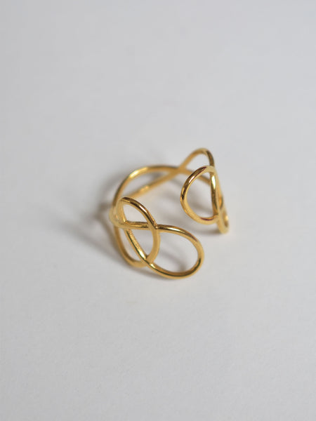 Labyrinthe est une jolie bague fine dorée en acier inoxydable.