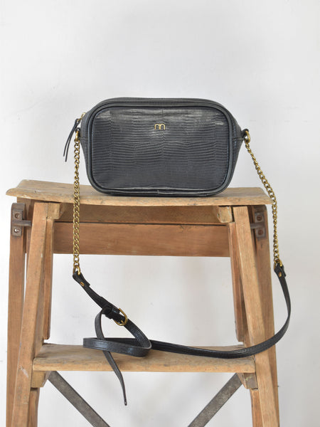Nat&Nin est un petit sac noir rectangle en cuir, que l'on préfère dénicher à prix malin seconde main.